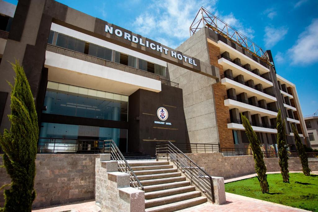 Nordlicht Hotel Marina El Alamein يقع في مدينة العلمين، وعلى بعد 1.7 كم من شاطئ الشاطبي، وهو مكان إقامة يتميز بمطعم ومواقف خاصة للسيارات مجاناً وبار وصالة مشتركة، كما يوفر هذا الفندق المصنف 4 نجوم مكتباً للاستقبال يعمل على مدار الساعة وخدمة الغرف وخدمة الواي فاي مجاناً،