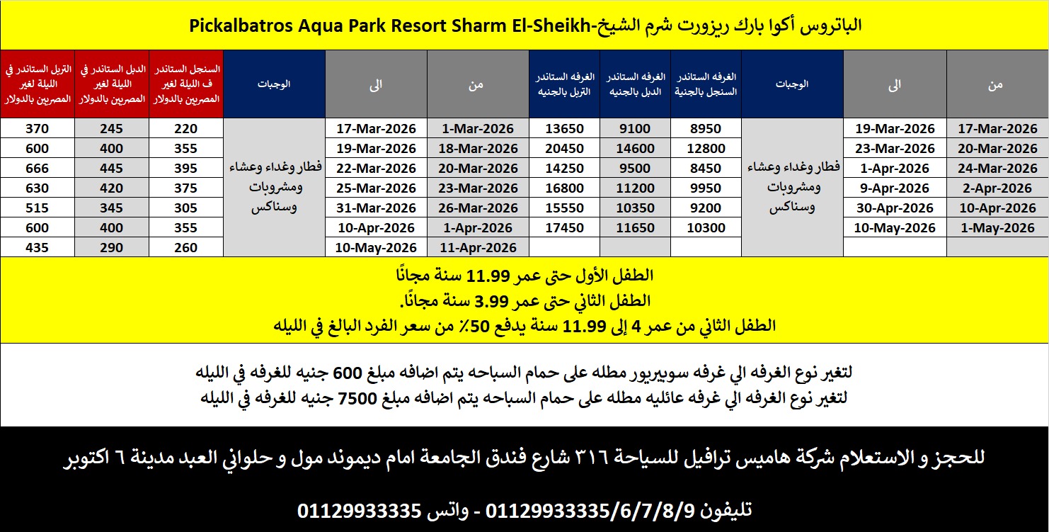 سياسة الاطفال الطفل من 6 الي 11.99 1200ج في الليلة شامل سرير اضافي