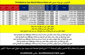 لتغيير نوع الغرفة الى غرفة مطلة على البحر يتم اضافه مبلغ (375جنيه او 20 دولار) للفرد فى الليلة