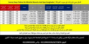 سعر الفرد في 🛌 الغرفة الدابل او التربل مطله على الحديقه او حمام السباحه او بشكل جزئى على البحر في الليلة للمصريين ” فرد + طفلين او فردين + طفلين او 3 افراد + طفل “