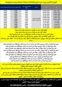 سعر الفرد في 🛌 الغرفة الدبل او التربل في الليلة للمصريين