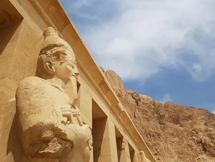 انتقل بعد ذلك للاستمتاع بمعبد الملكة حتشبسوت الذي شيدته الملكة حتشبسوت ابنة تحتمس الأول التي حكمت مصر حوالي 20 عامًا في عهد الأسرة الثامنة عشر (تقريبًا من عام 1490 إلى عام 1469 قبل الميلاد)، وهي المرأة الفرعونية الوحيدة التي حكمت مصر القديمة. واصل جولتك إلى المعابد والمقابر بالضفة الغربية، وسيتم نقلك مرة أخرى إلى فندقك في الأقصر.