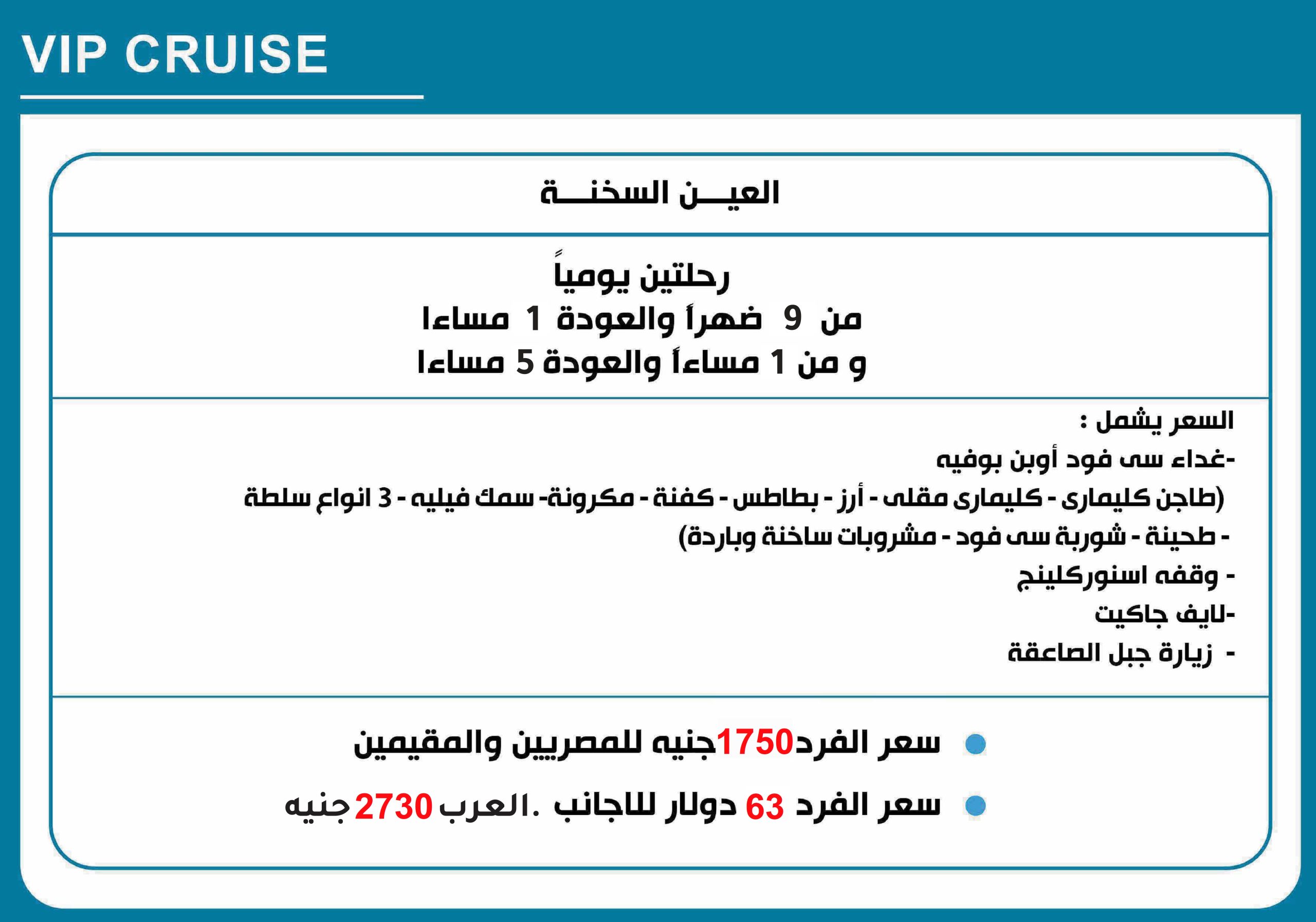 سعر الفرد 63 دولار للاجانب .العرب 2730 جنيه
