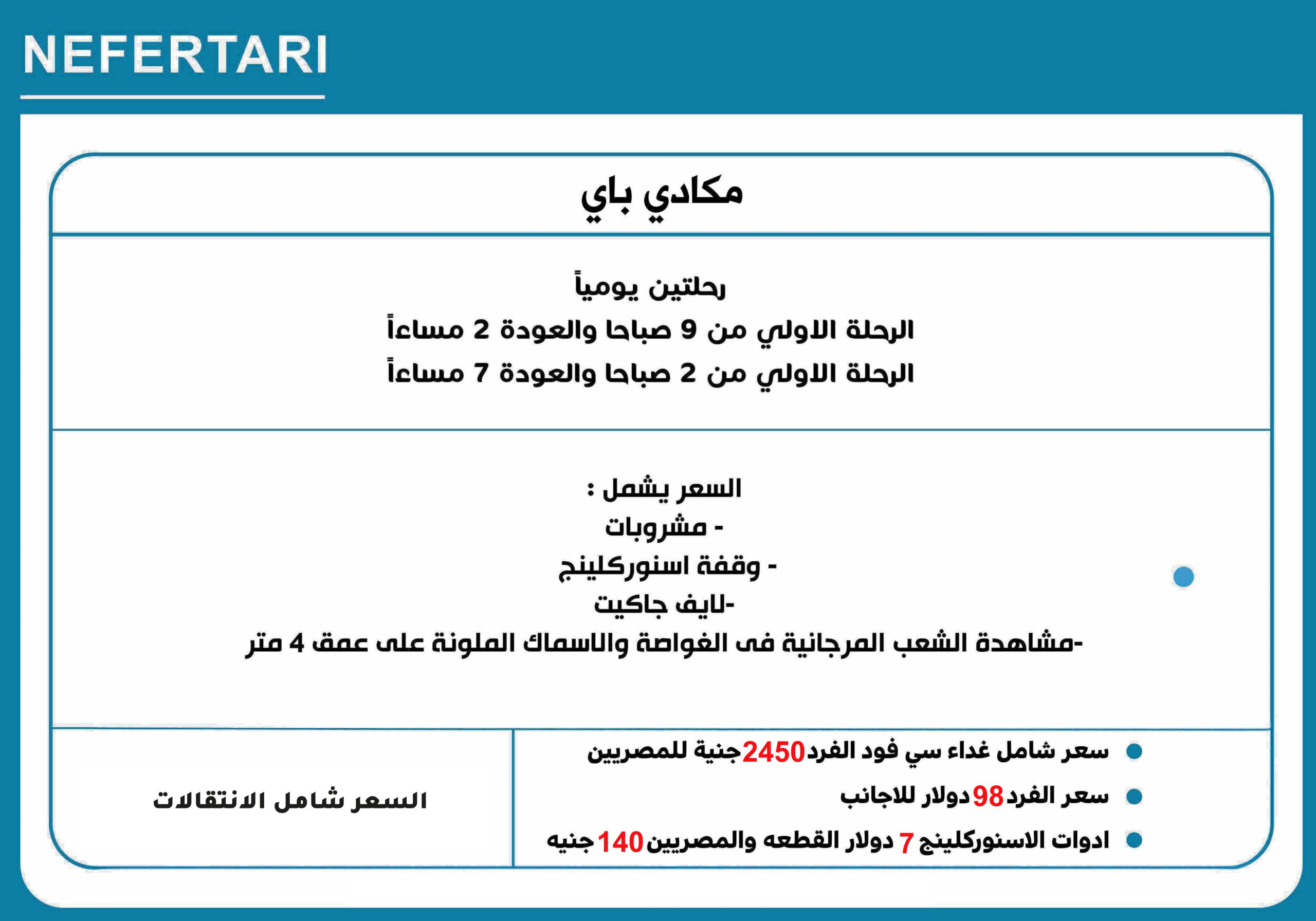 الرحلة الاولي من 9 صباحا والعودة 2 مساءاً