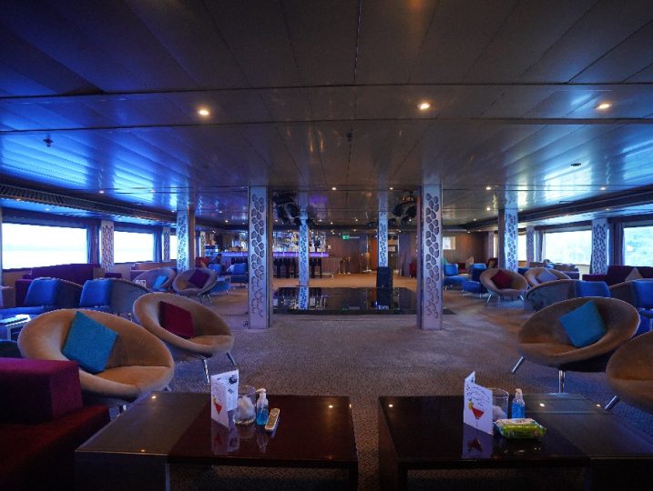 مكتب استقبال 24 ساعة – إنترنت (مقابل رسوم) – خدمة غسيل – سطح شمسي بمسبح وبار – متجر هدايا – طبيب عند الطلب – قاعة اجتماعات عند حجز الباخرة بالكامل – هاتف وفاكس دولي (مقابل رسوم) – أجهزة لياقة – ساونا ومساج – قبول البطاقات الائتمانية