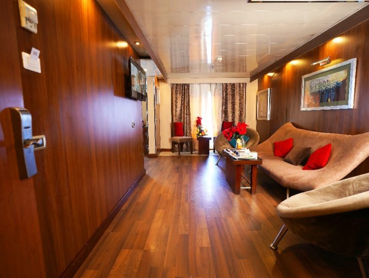 61 كابينة عادية (Standard Cabins) – 2 جناح ملكي (Royal Suites) – 2 جناح صغير (Junior Suites)