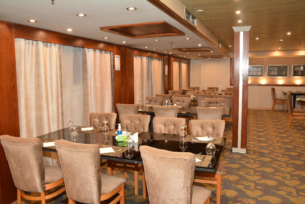 مكتب استقبال 24 ساعة – إنترنت (مقابل رسوم) – خدمة غسيل – سطح شمسي بمسبح وبار – متجر هدايا – طبيب عند الطلب – قاعة اجتماعات عند حجز الباخرة بالكامل – هاتف وفاكس دولي (مقابل رسوم) – أجهزة لياقة – ساونا ومساج – قبول البطاقات الائتمانية