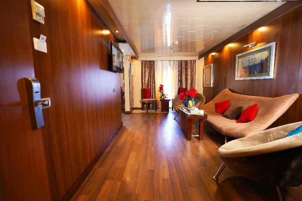61 كابينة عادية (Standard Cabins) – 2 جناح ملكي (Royal Suites) – 2 جناح صغير (Junior Suites)
