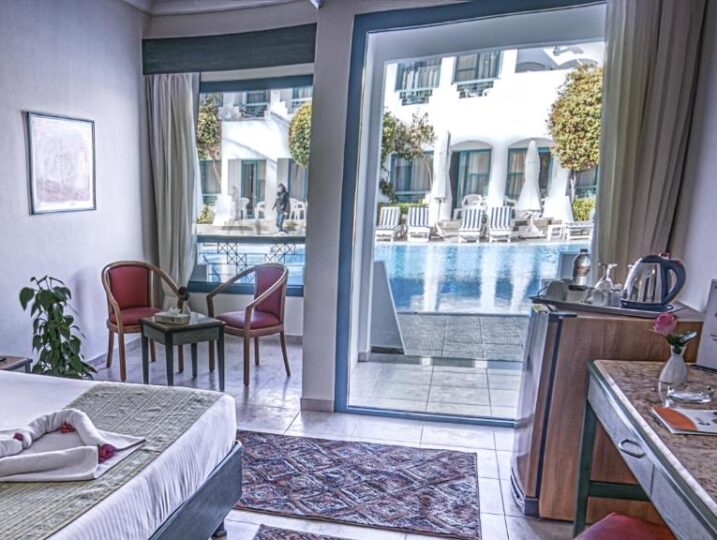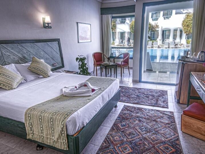 لحجزغرفة مطلة على حمام السباحة يتم اضافه مبلغ 650 جنيه او 15 دولار للفرد الواحد فى الليلة
