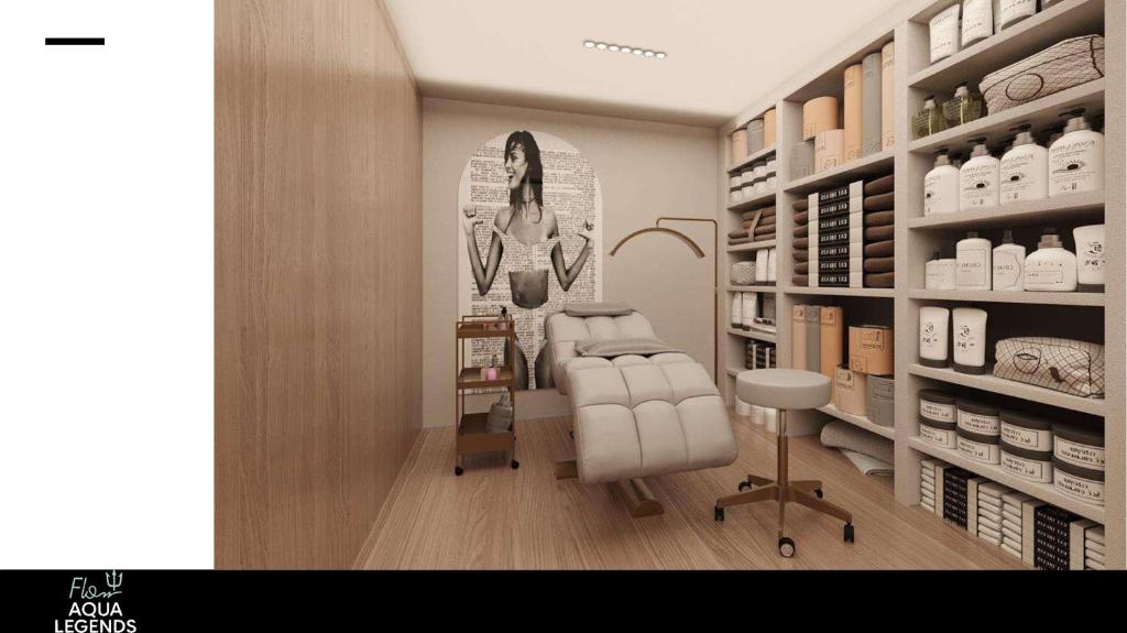 خدمات التجميل: صالون حلاقة وتجميل متكامل (عناية بالشعر، بشرة، مكياج، وعناية بالأطراف)، بالإضافة إلى كراسي مساج وباقات عافية متنوعة.