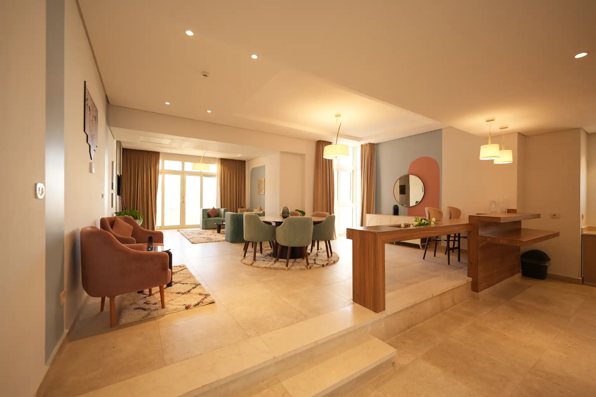 يقع مكان إقامة “Gewan Resort New Alamein” في العلمين، على بعد 18 كم من بورتو مارينا، ويتميز بمسبح خارجي موسمي ومواقف خاصة للسيارات مجاناً ومركز للياقة البدنية وحديقة. تشمل المرافق المتوفرة في مكان الإقامة هذا مطعماً، وصالة مشتركة، وخدمة الغرف، بالإضافة إلى واي فاي مجاني في جميع أنحاء مكان الإقامة. يوفر الفندق مسبحاً داخلياً، وترفيهاً مسائياً، ومكتب استقبال يعمل على مدار الساعة.