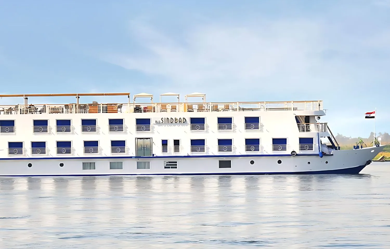 H/s Sindbad هو عبارة عن باخرة فاخرة للنيل، تضم 17 جناحًا فقط، ما يجعلها من أحدث وأرقى باخرت النيل البوتيكية في مصر، حيث تعكس التزامًا بالرفاهية والعناية الشخصية للضيوف. تقدم باخرة Sindbad خدمة مصممة خصيصًا لتلبي كل احتياجات الضيوف، مع أجنحة أنيقة تمثل ذروة الفخامة والأناقة، ومزودة بتلفزيون عبر الأقمار الصناعية البحرية، هاتف داخلي، قنوات موسيقية، ميني بار، طقم قهوة، وخزنة. تقوم الباخرة بالإبحار بين القاهرة وأسوان، وبين اسوان والاقصر مرورًا بالمواقع الأثرية الشهيرة، بما في ذلك المعابد والمقابر والآثار في مصر العليا والسفلى، مما يتيح للضيوف رحلة فريدة عبر عجائب مصر القديمة. وتجمع Sindbad بين الفخامة والخدمات المتميزة لتجربة لا تُنسى، حيث تشمل وسائل الراحة صالة بار وديكوتيك، سبا، سطح مسبح جميل، ومناطق طعام وجلوس مصممة بذوق رفيع. يمكن للضيوف الاستمتاع بجمال الطبيعة المحيطة، كما كانت على مدى مئات السنين، مع تذوق الكوكتيلات الباردة في رفاهية هادئة من الطراز الأول، لتكون تجربة الإبحار على النيل كما ينبغي أن تكون. بفضل أجنحتها الواسعة وخدماتها عالية الجودة، توفر Sindbad أجواءً مميزة تجمع بين الحداثة والتصميم الأصيل، لتمنح الضيوف عطلة فاخرة لا تُنسى في مصر، حيث تمزج بين سحر الماضي الذهبي والإقامة الفاخرة والمأكولات الشهية والخدمة المثالية