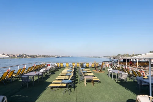 فندق فاخر من فئة 5 نجوم يقدم رحلات نيلية بين الأقصر وأسوان، يتميز بتصميم أنيق ومجموعة من المرافق مثل مطعم، بار، حمام سباحة على السطح، وصالة واسعة. السفينة تقدم تجربة سياحية فاخرة لاستكشاف المعالم المصرية التاريخية في بيئة مريحة وممتعة، مع تقديم وجبات ومشروبات متنوعة، بالإضافة إلى أنشطة ترفيهية. أهم مميزات إم.إس. كليوس الدرجة الفاخرة: تصنف كـ 5 نجوم فاخرة وتتميز بتصميمها الأنيق وعصريتها الحديثة. المرافق المتاحة: السطح العلوي: يضم حمام سباحة، منطقة للتشمس، وبار بجانب المسبح للاسترخاء والاستمتاع بالمناظر. المطعم: يوفر وجبات لذيذة وبوفيه مفتوح يضم المطبخ المصري والعالمي. الصالة والبار: مكان مثالي للاسترخاء بعد يوم طويل من استكشاف الآثار، ويقدم مجموعة متنوعة من المشروبات. الكابينات: تتميز بوجود شرفة فرنسية توفر إطلالات خلابة على النيل، مع وسائل راحة مميزة. الجولات السياحية: تتضمن الرحلة زيارة المعالم الأثرية الهامة مثل معابد الكرنك والأقصر، ووادي الملوك، ومعبد حتشبسوت، بالإضافة إلى معبد كوم أمبو، ومعبد إدفو، ومعبد فيلة في أسوان. التجديد: تم تجديد السفينة في عام 2024 لتوفير أقصى درجات الرفاهية لضيوفها.