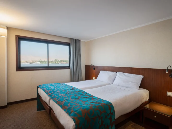 استمتع براحة لا مثيل لها على متن سفينة أوديسي النيلية. كل كابينة مجهزة بوسائل راحة عصرية، مما يضمن لك رحلة سلسة لا تُنسى. سواء اخترت غرفنا القياسية أو أجنحة جونيور الفسيحة، ستستمتع بتلفزيون مع قنوات فضائية، وميني بار، وقناة موسيقية، وخزنة، وغيرها الكثير. أبحر في النيل مع مزيج مثالي من الأصالة والراحة العصرية.