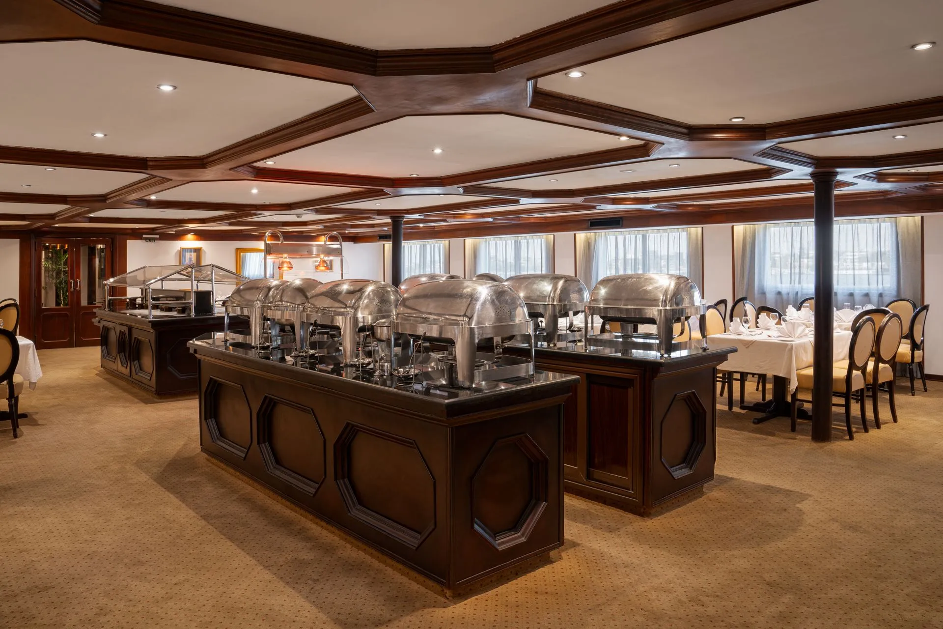 دلل نفسك بكنوز المطبخ المصري في مطعمنا على متن السفينة، أو استرخِ مع مشروب في البار. تجمع خيارات الطعام في أوديسي بين الأطباق المحلية والعالمية الشهية مع إطلالة ساحرة على نهر النيل، لتُضفي على حواسك وليمة لا تُنسى.