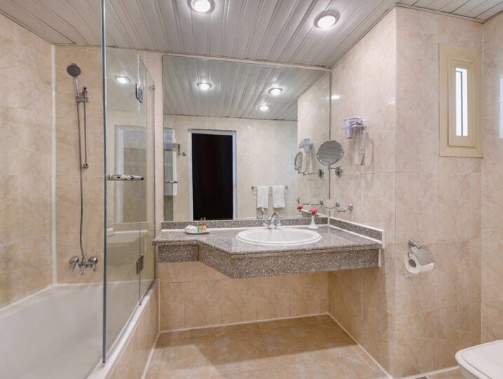 تحتوي الغرف في هذا المنتجع على خزانة ملابس وتلفزيون وحمّام خاص وبياضات أسرّة ومناشف، كما تضم الغرف ثلاجة للضيوف.