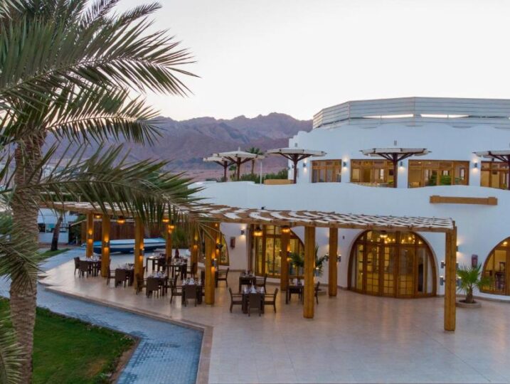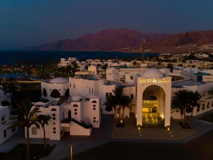 يقع “Safir Dahab Resort فندق سفير دهب” على بعد ساعة واحدة فقط بالسيارة من شرم الشيخ، ويتميز بإطلالات بانورامية على البحر الأحمر، كما يحتوي على شاطئ خاص ويضم منطقة مسبح أنيقة ذات مناظر طبيعية. تتميز الغرف بأنها واسعة وتحتوي على أسرّة فاخرة، كما تشمل ميني بار وحمّاماً رخامياً خاصاً، وتوفر كل غرفة شرفة مع إطلالة على الحديقة.