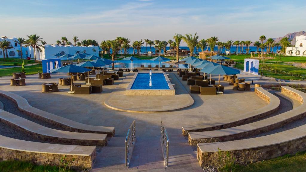 يقع “Safir Dahab Resort فندق سفير دهب” على بعد ساعة واحدة فقط بالسيارة من شرم الشيخ، ويتميز بإطلالات بانورامية على البحر الأحمر، كما يحتوي على شاطئ خاص ويضم منطقة مسبح أنيقة ذات مناظر طبيعية. تتميز الغرف بأنها واسعة وتحتوي على أسرّة فاخرة، كما تشمل ميني بار وحمّاماً رخامياً خاصاً، وتوفر كل غرفة شرفة مع إطلالة على الحديقة.