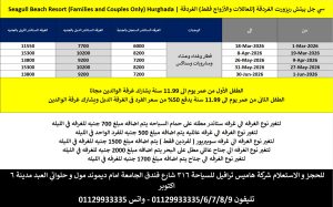 لاضافة سويت اطلاله علي البحر – سي جل بيتش ريزورت (للعائلات والأزواج فقط)- الغردقه ( EGP 0 )
