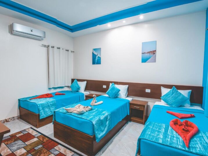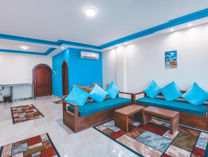 في دهب، ويتميز بمسبح خارجي وحديقة وصالة مشتركة وتراس. يوفر مكان الإقامة مكتباً للاستقبال يعمل على مدار الساعة، وتوصيلات للمطار، وخدمة الغرف، وواي فاي مجاني.
