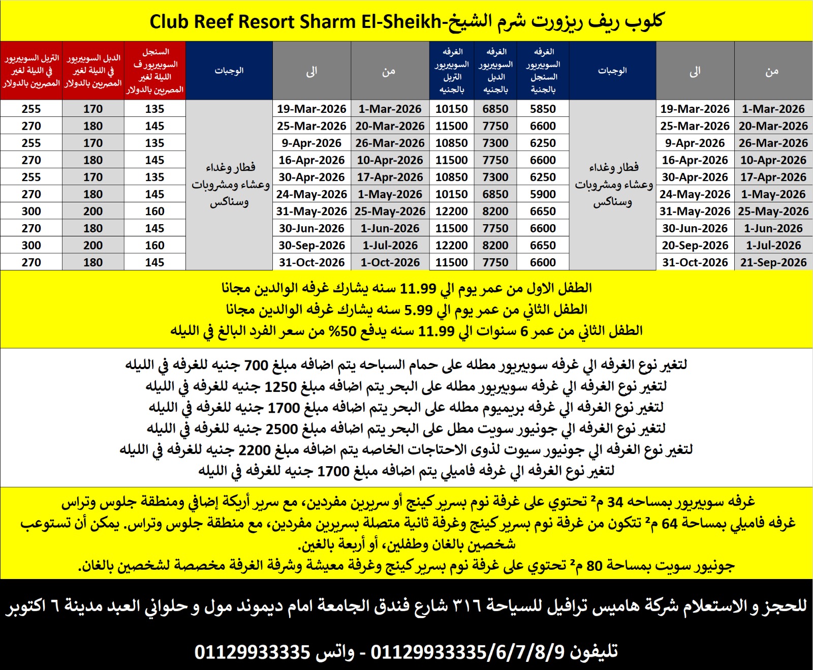 يوفر هذا المنتجع المصنف 4 نجوم إطلالات خلابة على موقع صدفة الشهير للغوص في خليج العقبة، ويضم مسابح خارجية وأنشطة ترفيه ليلية و3 مطاعم متنوعة، حيث تتميز جميع الغرف في منتجع Club Reef Hotel بإطلالات مباشرة على البحر الأحمر من شرفات خاصة، ومجهزة بتكييف هواء وتلفزيون بقنوات الكابل ورداء حمّام، وتقدم المطاعم بوفيهات مسائية بطابع خاص تشمل المأكولات المصرية التقليدية، إلى جانب مطعم Oasis المتخصص في مأكولات البحر الأبيض المتوسط والمأكولات البحرية الطازجة، بالإضافة إلى مطعم بيتزا وبار للمسبح وبار للّوبي ومسرح خارجي للعروض، وتضم المنشأة 140 غرفة وجناحًا بإطلالات على الحديقة والمسبح والبحر مع تراس على السطح، وجميعها مجهزة بكراسي استرخاء وطاولة وحمام بدش ومجفف شعر وخزنة وتكييف وتلفزيون فضائي وميني بار، كما يمكن للضيوف الاستمتاع بشاطئ خاص مزود برصيف وتجارب غوص سطحي وسكوبا مميزة أو الاسترخاء في أربعة مسابح منها مسبح مدفأ شتاءً وآخر للأطفال، إضافة إلى سبا La Siesta الذي يوفر تجربة متكاملة تشمل جلسات تدليك وفرك وحمامات تركية وساونا وبخار ومسبح داخلي مدفأ وجاكوزي وصالون تجميل متكامل.