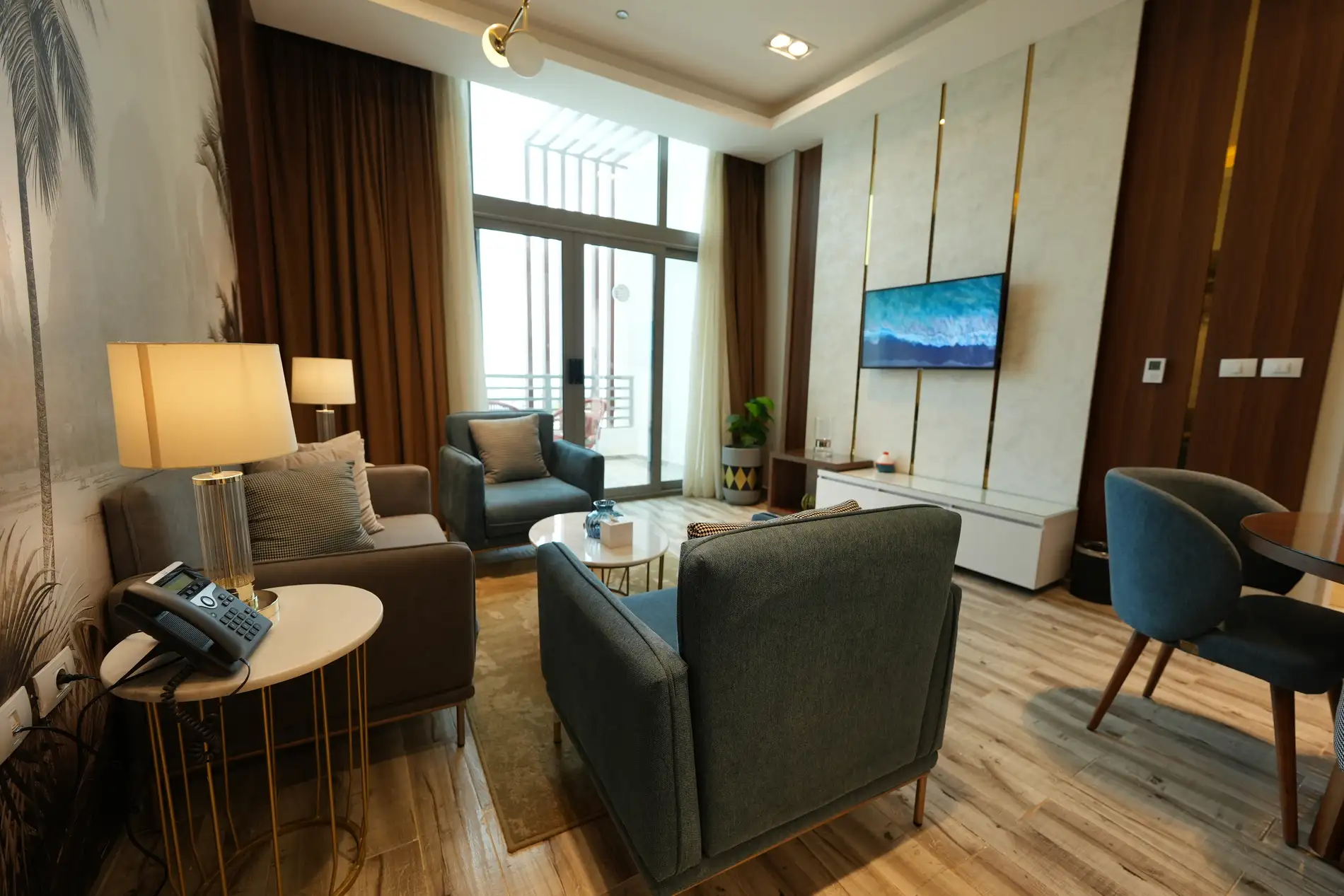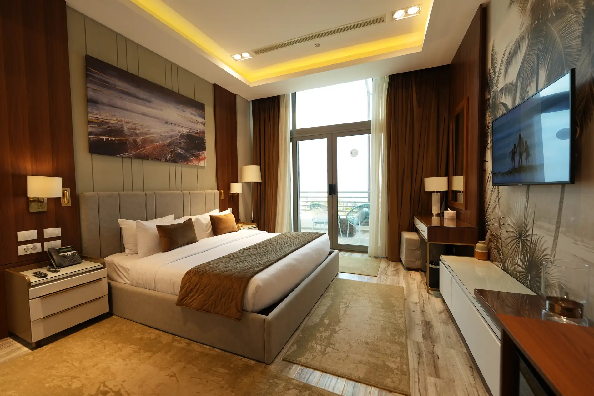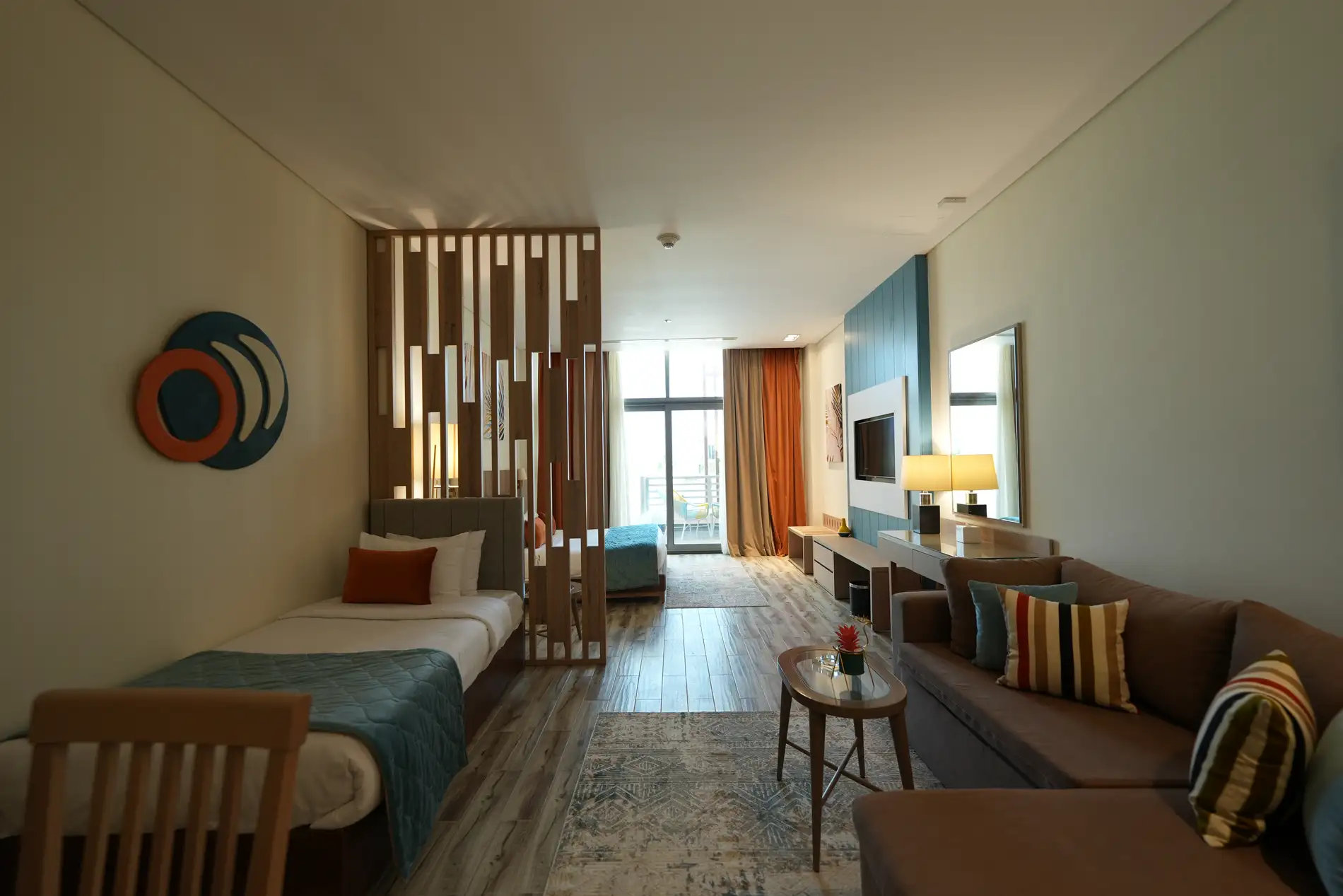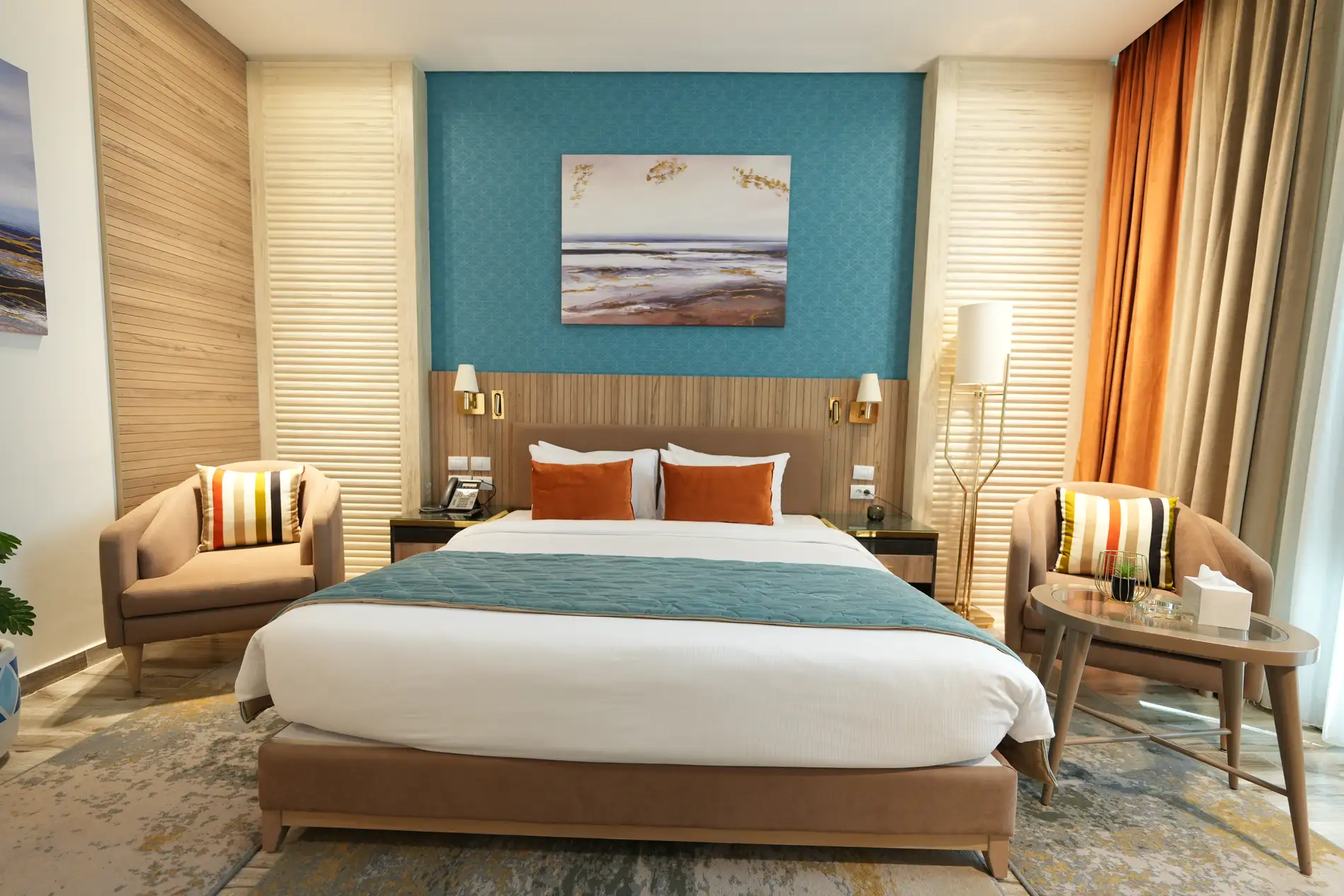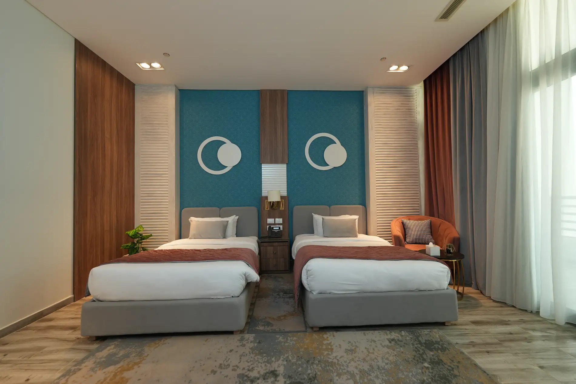 يوفر الفندق للضيوف غرفاً مكيّفة مجهزة بمكتب وغلاية وميني بار وصندوق ودائع آمن وتلفزيون بشاشة مسطحة، بالإضافة إلى حمّام خاص مزود بدش، كما توفر بعض الغرف في مكان الإقامة مطبخاً مزوداً بفرن وثلاجة وميكروويف للضيوف، وتشمل جميع الغرف بياضات أسرّة ومناشف.