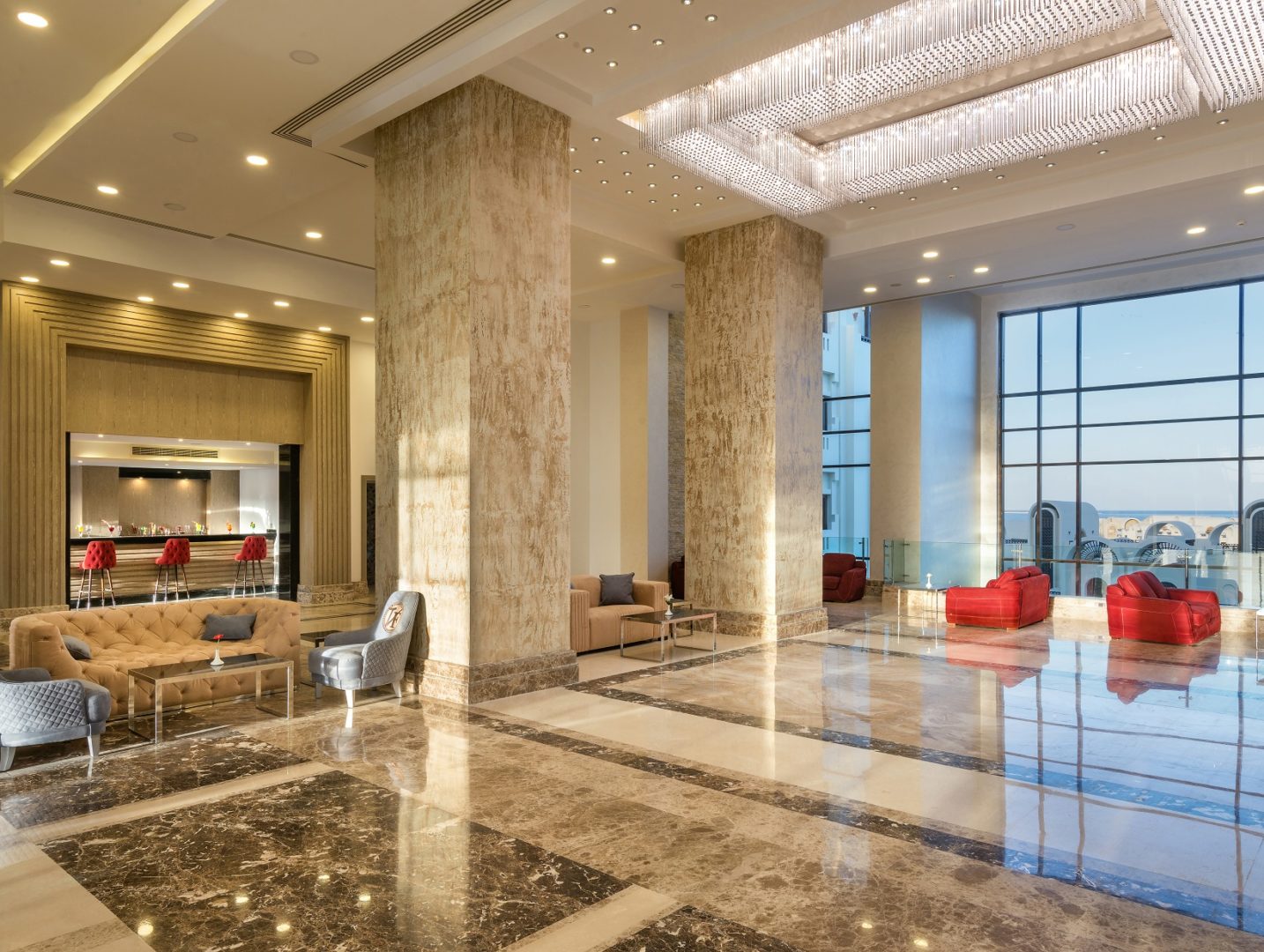 - اهم مواصفات الفندق : تصنيف الفندق اربع نجوم, شاطئ صخري, ممر ( جي تي ) داخل البحر للسنوركلنج, منطقة مخصصة لألعاب الاطفال, نادي صحي و جيم
