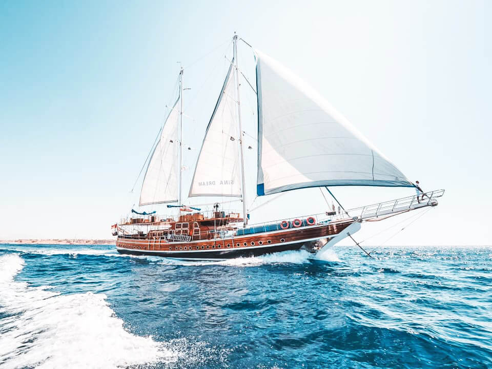 رحلة جزيرة تيران علي مركب سينا دريم من الرحلات المميزة في شرم الشيخ، مركب سينا دريم الشراعي من أكبر و أفخم المراكب الشراعية في شرم الشيخ، يقدم المركب خدمة الخمس نجوم، يتكون المركب من 7 غرف كاملة التجهيزات، قاعة داخلية بأحدث الامكانيات، المركب يحتوي علي طابقين مجهزيين باحدث الترابيزات، الكراسي و الشزلونجات. يقدم مركب سينا دريم غداء (سي فوود) أشهي الماكولات البحرية مع شربة السي فوود ذو الطعم الرائع حيث يوجد لديهم أشهر و أحسن الطباخين في شرم الشيخ، بالاضافة الي ذلك يقدمون العديد من الأنشطة الترفيهية خلال الرحلة مثل الكرسي المتأرجح، الكرسي الطائر، الانزلاق علي الماء و الرقص الشرقي.