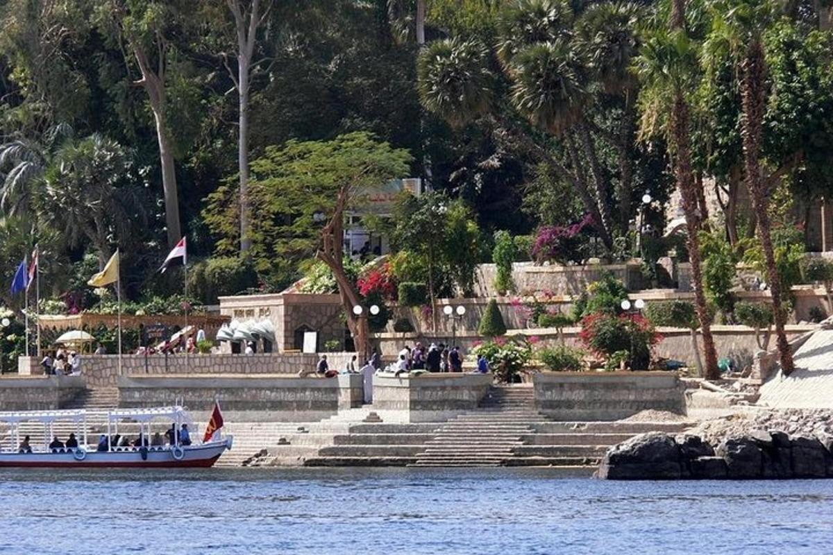 سيقابلك مرشدنا السياحي الودود عند استقبال فندقك أو رحلة النيل في أسوان ويبدأ جولة الاسترخاء الخاصة بك على مركبة خاصة مكيفة، ثم يتجه إلى نهر النيل لاستقلال القارب التقليدي الصغير (الفلوكة) ويبدأ في الاستمتاع بالإبحار في أفضل المواقع على نهر النيل حيث تتلألأ المياه باللون الأزرق ويحصل على جولة كبيرة للإبحار حول جزيرة كيتشنر، ثم يبدأ في زيارة الحدائق النباتية هناك والتي تضم العديد من الأنواع الخاصة والنادرة من النباتات والزهور التي تم استيرادها من العديد من الأماكن في جميع أنحاء العالم منذ عام 1898، إنه مكان حقيقي للشعور بالبهجة والاسترخاء تعرف أكثر على تاريخ الجزيرة وأنواع نباتاتها لاحقًا، ستحصل على نقل مريح إلى فندقك أو رحلة نهرية في أسوان