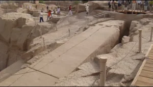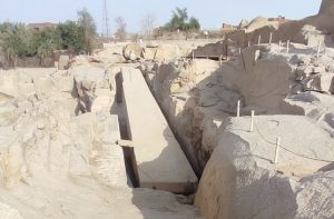 تم اكتشاف المسلة الناقصة في أوائل القرن العشرين بعد أن غطتها الرمال لآلاف السنوات في إحدى محاجر أسوان الشهيرة بصلادتها وجودتها العالية. على الأرجح أنه بدأ نحت هذه المسلة غير المكتملة بتكليف من الملكة حتشبسوت (حوالي 1473-1458 ق.م) لنصبها أمام معبد آمون في الكرنك، لكن توقف العمل بالمسلة الراقدة بعد ظهور العديد من التشققات في الحجر. تعتبر المسلة الناقصة من أطول المسلات المصرية على الإطلاق، حيث يصل طولها إلى ٤٢م وتزن 1168طن تقريبًا لو قُدر الانتهاء منها ونصبها.