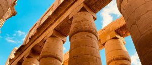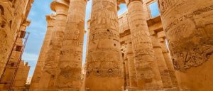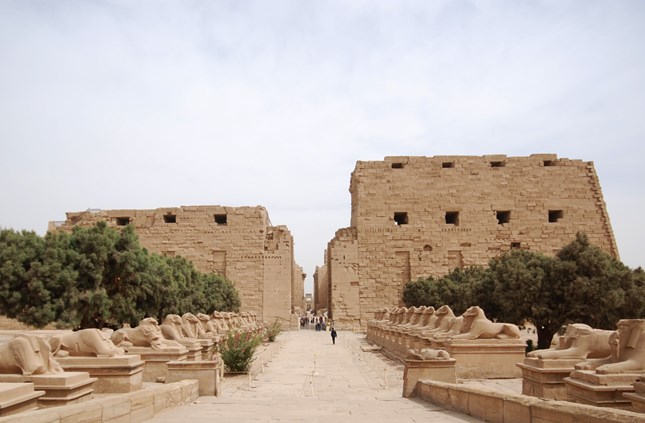 تظهر براعة المصريين القدماء في فنون البناء والنحت في معابد الكرنك، حيث تتزين الجدران بنقوش رائعة، وتماثيل ضخمة، وأعمدة عظيمة. من أبرز معالم المعبد قاعة الأعمدة الكبرى، والتي تحتوي على 134 عمودًا ضخماً، يصل ارتفاع بعضها إلى 15 متر، بينما يصل ارتفاع الأعمدة الكبرى في المنتصف إلى 21 متر. بدأت أعمال بناء هذه القاعة في عهد أمنحتب الثالث (حوالي 1390–1352 ق.م)، ولكن الزخارف والبناء الرئيسي تم في عهد كلًا من سيتي الأول (حوالي 1294–1279 ق.م)، ورمسيس الثاني (حوالي 1279–1213 ق.م). بالقرب من هذه الأعمدة تقف مسلتان ضخمتان، شيدت إحداهما الملكة حتشبسوت (حوالي 1473–1458 ق.م)، ويبلغ ارتفاعها نحو 30 متر، ووزنها أكثر من 300طن.