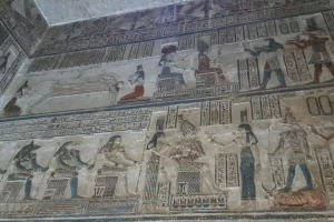 سنذهب بالسيارة إلى معبد الإلهة حتحور الجميل في دندرة، إلهة الموسيقى والحب. المعبد الجميل للإلهة حتحور في دندرة، المعبد هو أحد أفضل الآثار المحفوظة في مصر في (مدينة صعيد مصر القديمة السادسة)، إلهة الموسيقى والحب والموسيقى. شاهد على المشاهد الملونة المحفوظة جيدًا والمرسومة على الجدران والأسقف الفلكية بما في ذلك إلهة السماء نوت. يعد سقف معبد دندرة كنزًا يجب زيارته، والدرج الموجود على اليمين حلزوني إلى الأعلى، وهي نفس الخطوات التي استخدمها الكهنة المصريون القدماء في مهرجانات رأس السنة الجديدة، وقد تم تزيين سقف أحد هذه المزارات بأبراج بيضاوية منحوتة بشكل جميل. بعد هذه الجولة المذهلة عبر الحضارة المصرية القديمة، سوف يرافقك مرشدنا السياحي بالسيارة المكيفة إلى فندقك في الأقصر.