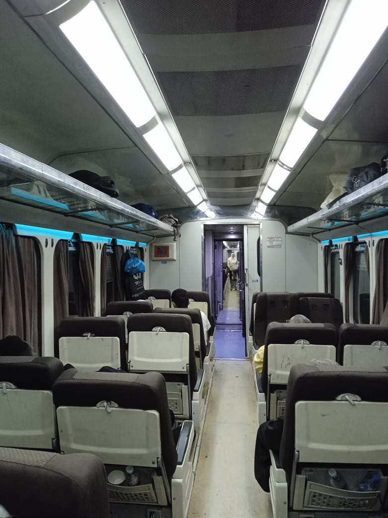 خدمات: قد تشمل شاشات ترفيهية، مقابس شحن، وخدمات وجبات خفيفة (حسب نوع القطار)